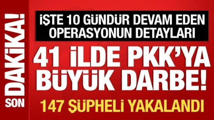 Bakan Yerlikaya sosyal medya hesabından yaptığı açıklamada,41 ilde PKK/KCK'ya yönelik Jandarma tarafından son 10 gündür devam eden “Gürz-37" operasyonlarında 147 şüpheli terör örgütü mensubu yakalandığını kaydetti.