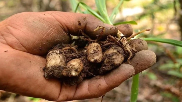 Salep üreticisi Ramazan Aktaş, "Mayısın ortası, en fazla Haziran’ın 15’ine kadar hasat yapıyoruz. Çünkü hava sıcaklığı ile beraber yumrular kurumaya başlıyor. Bu nedenle ana yumrunun neslinin devamı adına hasadın bu zamanda yapılması gerekiyor.
