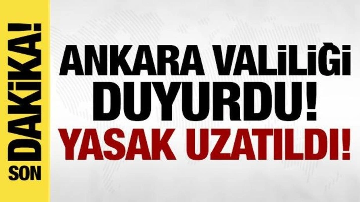 SON DAKİKA: Ankara Valiliği; il genelinde gösteri yürüyüşleri ve basın açıklamalarının yasaklanmasına yönelik alınan kararın 26 Mart 2025 Çarşamba günü saat 00.00'dan, 1 Nisan 2025 Salı günü 23.59'a kadar uzatılmasına karar verdi.