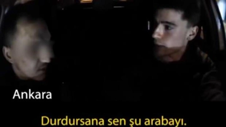 Ne olduğunu anlayamayan genç özür dilerken, aracına yolcu olarak binen taksici ise, “Oğlum önünü kesecekler durdur, nereye kaçıyorsun? Vurmak istemiyorum dur bak. Oğlum takip ediyorlar dur bak.” diyor.
