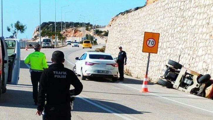 Olay, D-400 Kaş-Kalkan karayolunda meydana geldi. Edinilen bilgiye göre, Mustafa Yeşil (51) idaresindeki forklift yürüyüş yolu parke çalışması sırasında kamyondan taşlar indirildiği sırada geri gelirken refüje devrildi.