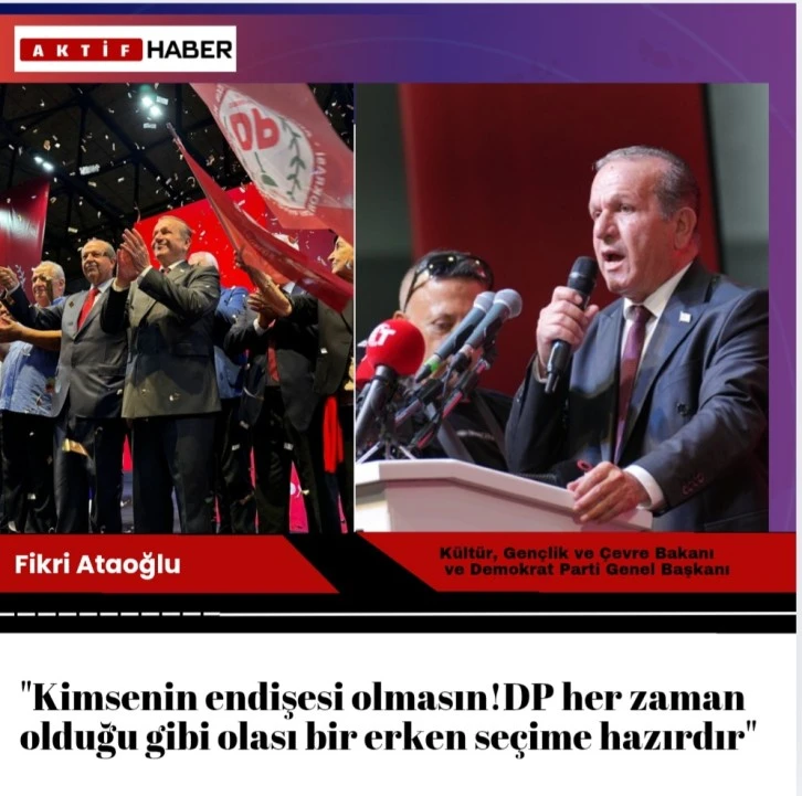 Konuşmasını coşkulu bir şekilde tamamlayan Bakan Ataoğlu, “Sevgili kardeşlerim, Demokrat Parti bizim yuvamızdır! Kıbrıs Türk siyasetinin şerefli meşalesini hep beraber daha ileriye taşıyacağız. Bundan sonra daha da kenetlenmiş olarak nice yollar yürüyeceğiz. Dağ başını duman almış, yürüyelim arkadaşlar!” ifadelerini kullandı.