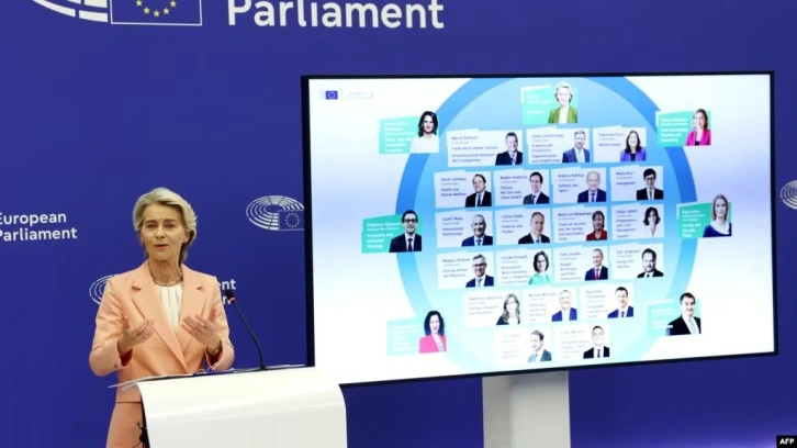 Von der Leyen, 6-9 Haziran'da yapılan Avrupa Parlamentosu (AP) seçimlerinin ardından gelecek 5 yıllık dönem için başkanlık edeceği Komisyon'un üyelerini Strazburg'da düzenlediği basın toplantısında açıkladı.