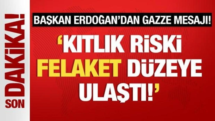 " Gazze'de kıtlık riski uluslararası sınıflandırmalara göre 'felaket' düzeyine ulaşmıştır" diyen Erdoğan, "Gazze nüfusunun yüzde 96'sı, diğer bir ifadeyle 2 milyondan fazla insan sağlıklı gıda ve suya erişemiyor" diye konuştu.