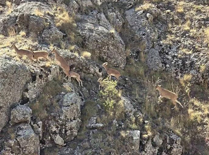 Halk arasında "yaban keçisi" olarak adlandırılan ve nesli tükenme tehlikesi altında olan dağ keçileri, Bayburt’ta Vauk Dağı civarlarında sürü halinde görüntülendi.