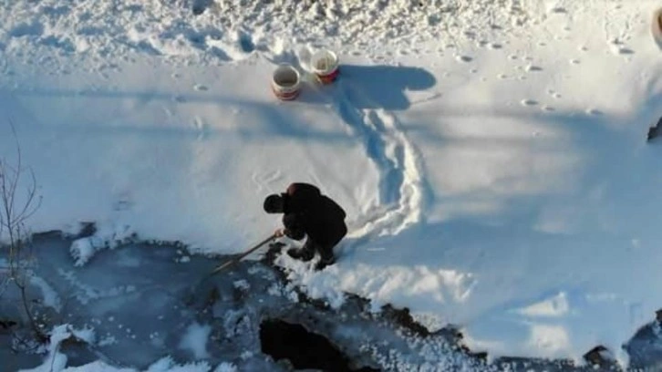Köyde yaşayanlar, kürek ve kazmalarla kırdıkları buz tabakasının altından çıkan suyu kovalarla hayvanlarına taşıdı. Hava şartlarının yaşamı zorlaştırdığını belirten bir köylü, “Köyde sularımız dondu. Derelerden su taşımaya çalışıyoruz. Zor oluyor ama yapmaya çalışıyoruz” dedi.