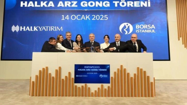 EgeYapı Avrupa GYO’nun 6-7-8 Ocak 2025 tarihlerinde yapılan talep toplama sürecinden sonra “ gong töreni” Borsa İstanbul’da yapıldı. Talep toplama sürecinde 356 bin 252 başvuruyla yüksek talep alan EgeYapı GYO için yapılan gong törenine Borsa İstanbul Genel Müdürü Korkmaz Ergun, EgeYapı Avrupa GYO Yönetim Kurulu Başkanı İnanç Kabadayı, EgeYapı Avrupa GYO Genel Müdürü Didem Güneş, EgeYapı Avrupa GYO Yönetim Kurulu Üyesi Hayrullah Mezireli, Halk Bankası Genel Müdürü Osman Arslan ve Halk Yatırım Genel Müdürü Bülent Sezgin katıldı.