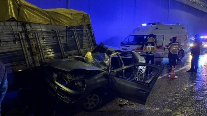 Ankara Yolu Caddesi Mimar Sinan battıçıktısında Cenk D. yönetimindeki otomobil, çarptığı kamyonetin altına girdi.