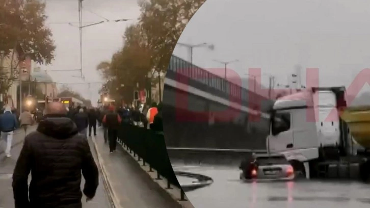 Kabataş - Bağcılar tramvayı arızalandı. Vatandaşlar sağanak yağmurun altında yürümek zorunda kaldı.