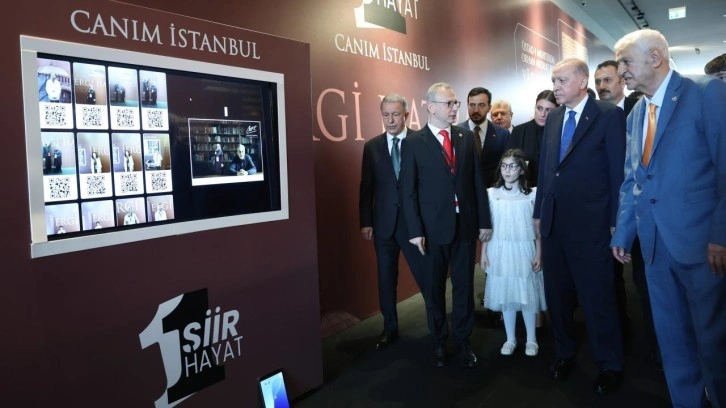 "Bir Şiir Bir Hayat Canım İstanbul" sergisini de gezen Erdoğan, ziyaretçilere yapay zeka destekli interaktif bir sistemle Necip Fazıl Kısakürek ile birebir sohbet etme imkanı sunan sistemi denedi.