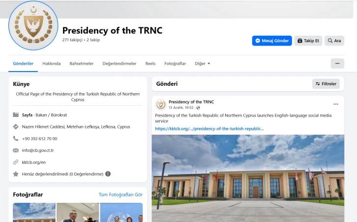 Facebook: Presidency of the TRNC