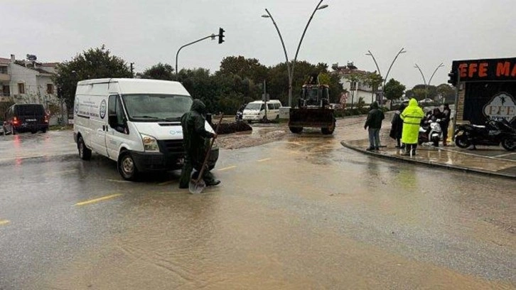 Sağanak nedeniyle trafikteki sürücüler zor anlar yaşadı. Belediye ekipleri, suyun tahliye edilmesi için çalışma başlattı.