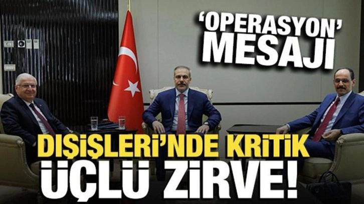Dışişleri Bakanlığının X sosyal medya hesabından yapılan paylaşımda, Bakan Fidan'ın Milli Savunma Bakanı Güler ve MİT Başkanı Kalın ile bakanlıkta görüştüğü bildirildi.