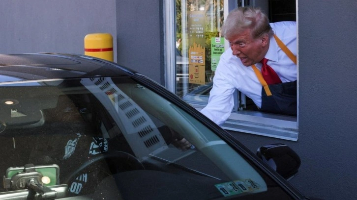 Arabaya servis sırasında bekleyen müşterilerle de sohbet eden Trump'a çevrede bulunan Cumhuriyetçi destekçileri yoğun ilgi gösterdi.