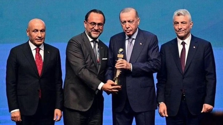 Trendyol Grubu Başkanı Çağlayan Çetin, ödülü Cumhurbaşkanı Recep Tayyip Erdoğan’ın elinden aldı.
