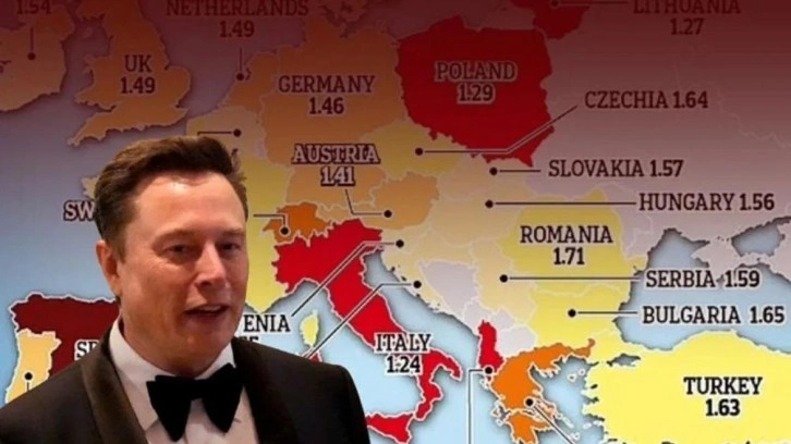 Elon Musk, sahibi olduğu sosyal medya sitesi X'te yayınlanan Avrupa'daki doğurganlık oranını gösteren bir haritayı paylaşarak "Avrupa ölüyor" uyarısında bulundu.