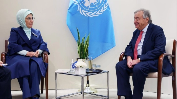 Cumhurbaşkanlığı kaynaklarından edinilen bilgilere göre, BM 79. Genel Kuruluna katılmak üzere ABD'ye gelen Cumhurbaşkanı Erdoğan ile birlikte New York'ta bulunan Emine Erdoğan'ın, BM Genel Merkezi'nde gerçekleşen görüşmede Guterres'e yeniden bir araya gelmekten memnuniyet duyduğunu söylediği öğrenildi.