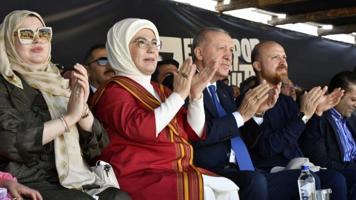 Festival alanını Cumhurbaşkanı Erdoğan ile ziyaret eden Emine Erdoğan, burada '' Karabağ Atları''nın gösterisini izledi.