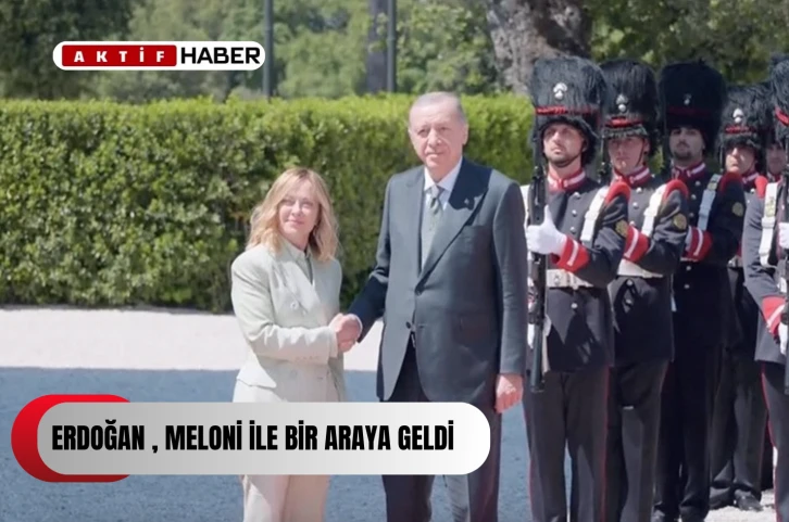 Başbakan Meloni, Villa Pamphili Konutu'nda düzenlenen törende, Cumhurbaşkanı Erdoğan'ı aracından inerken karşıladı.