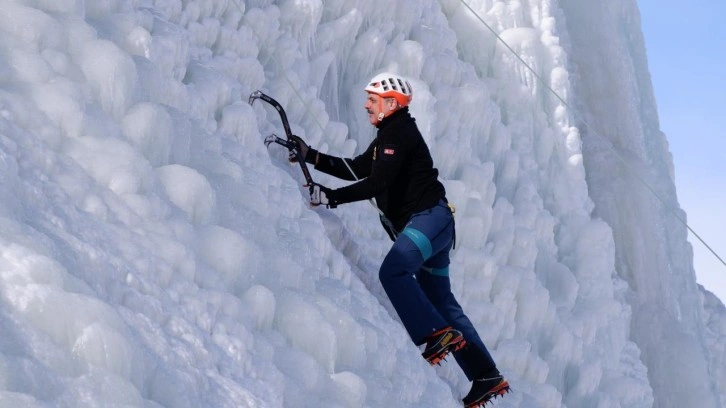 Erzurum Valisi Mustafa Çiftçi ve Gaziantep Şahinbey Belediye Başkanı Mehmet Tahmazoğlu, ilk deneyimlerinde güvenlik ve tırmanış bilgilendirmesinden sonra 20 metre yüksekliğindeki buz duvara tırmandı.
