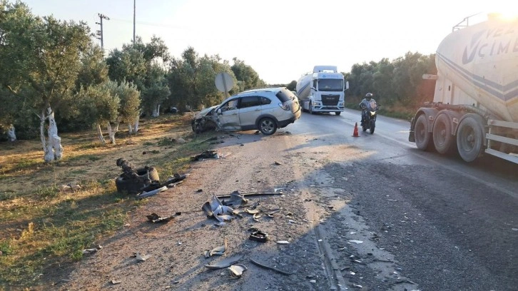 Çarpışmanın etkisiyle, cip zeytin tarlasına uçan cip kullanılmaz hale geldi.