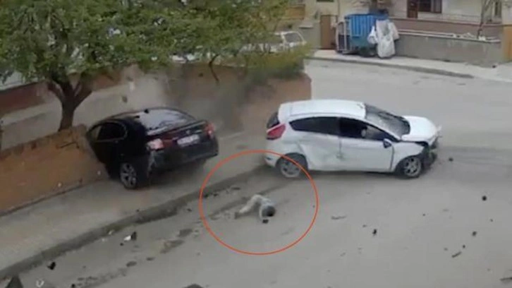 Öte yandan, kaza anı güvenlik kamerasına yansıdı. Çarpmanın etkisiyle savrulan araçlardan birinin bahçeye girdiği, diğer otomobildeki çocuğun camdan dışarı fırladığı anlar görüntülere yansıdı.