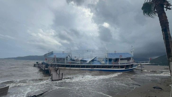 Muğla'nın Marmaris ilçesinde dün gece başlayan sağanak yağış ve fırtına sabah saatlerinden itibaren etkisini artırırken, denizde de etkisini gösteren fırtına sebebiyle bazı tekneler de sürüklendi.