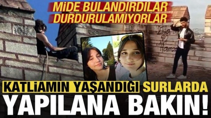 Vahşetin yaşandığı Edirnekapı surlarına giderek video çeken kişiler, surlarda poz verip şarkı eşliğinde etkileşimlerini artırmaya çalıştı.