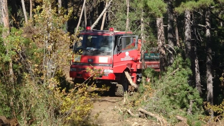 İlk belirlemelere göre 2,5 hektar karaçam ormanının zarar gördüğü yangının çıkış nedeni araştırılırken, bölgede soğutma çalışmaları sürüyor.