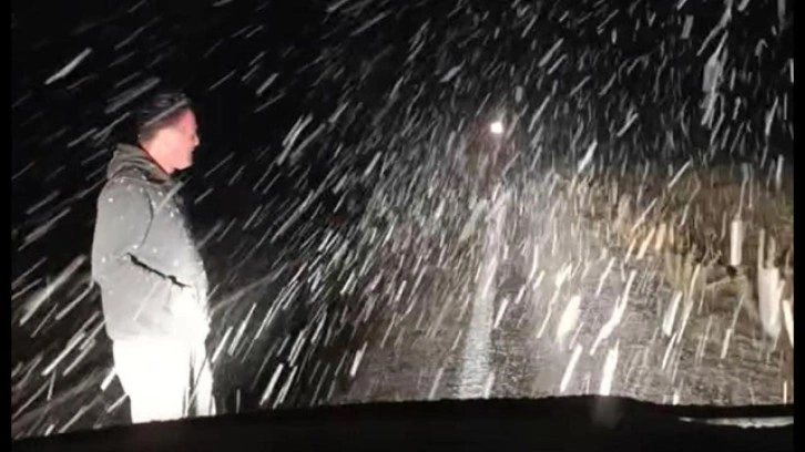Toros Dağları'nın eteklerinde bulunan kırsal Toros Mahallesi'nden geçen ve Mersin’i Karaman’a bağlayan Erdemli-Ayrancı Karayolunu kullanan vat andaşlar kar yağışının şaşkınlığını yaşadı.