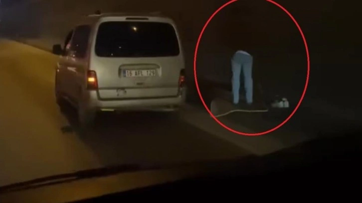 Seyir halindeyken bir anda dörtlülerini açarak aracını en sağ şeride çeken sürücü, seccadesini çıkararak namaza durdu. O anları gören diğer sürücüler, o anları saniye saniye amatör kamera ile kaydetti.