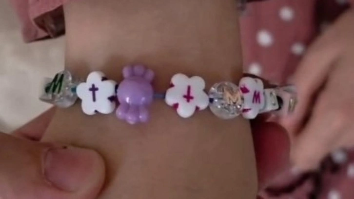 Bileklik üzerindeki boncukları inceleyen baba, boncuklarda haç işareti olduğunu fark edince duruma tepki gösterdi ve o anları cep telefonu kamerasıyla kaydetti. Görüntülerde küçük kızın kolundaki bileklikte haç işaretleri olduğu görülüyor.