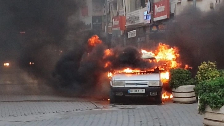 Balıkesir'in Burhaniye ilçesinde Cumhuriyet Meydanı'nda 10 BFY 71 plakalı otomobilin kaputunun altından duman çıkmaya başladı.