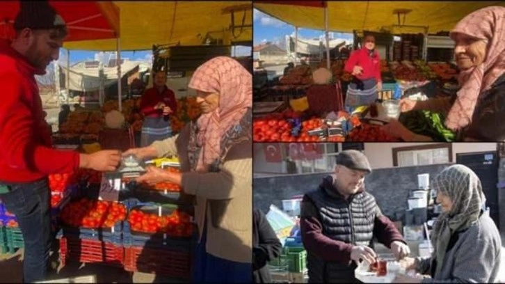Pazarcılardan Furkan Kula ise Sevim Piliç'in çalışkanlığına dikkati çekerek, "Teyzemiz sabah sobamızı yakıyor, çayımızı demliyor. Ekmek parası için herkesin örnek alacağı bir kadın." diye konuştu.