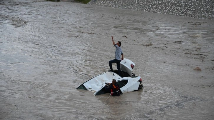 Taşma sonucu park halindeki 7 otomobil dere yatağına sürüklendi, bazı tarım arazileri de sular altında kaldı.