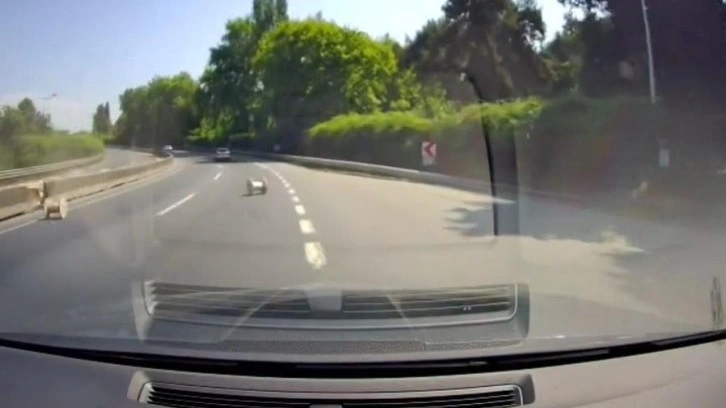 Kaza anı araç kamerasına saniye saniye yansırken, yuvarlanan makaralardan bazıları karşı şeride geçti.
