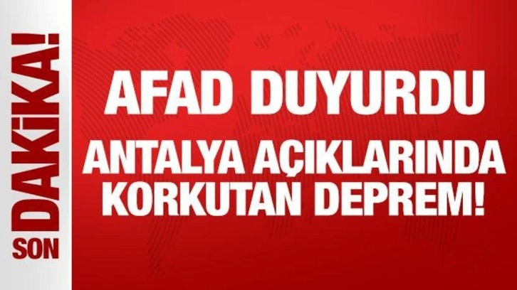 SON DAKİKA HABERİ: İçişleri Bakanlığı Afet ve Acil Durum Yönetimi Başkanlığı (AFAD), Antalya'nın Kaş ilçesi açıklarında Akdeniz'de saat 19.54'te 4.7 büyüklüğünde bir deprem meydana geldiğini duyurdu.