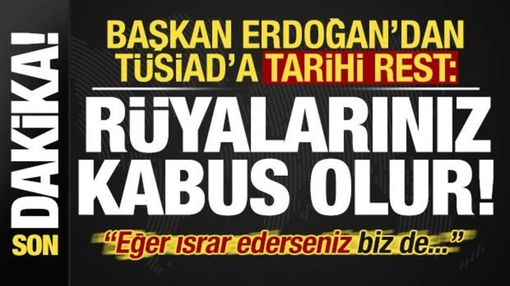 Son dakika haberi... Başkan Erdoğan, AK Parti 8’inci Olağan Büyük Kongresi'ndeki konuşmasında Türk Sanayicileri ve İş İnsanları Derneği (TÜSİAD) Yönetim Kurulu Başkanı Orhan Turan ve TÜSİAD Yüksek İstişare Konseyi Başkanı Mehmet Ömer Arif Aras’ın geçtiğimiz günlerde yaptığı skandal açıklamalara ilişkin çok sert açıklamalarda bulundu.