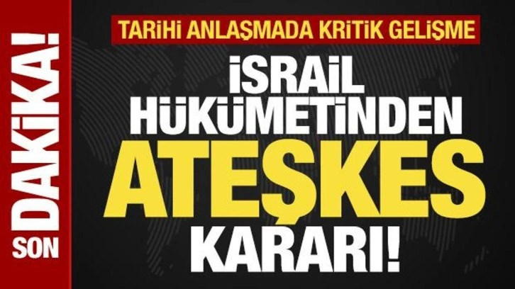 SON DAKİKA ATEŞKES HABERİ: ABD'nin seçilmiş Başkanı Donald Trump'ın " İsrail ve Hamas anlaştı" diyerek duyurduğu Gazze Şeridi'nde ateşkes ve esir takası anlaşmasıyla ilgili İsrail hükümeti kararını verdi.