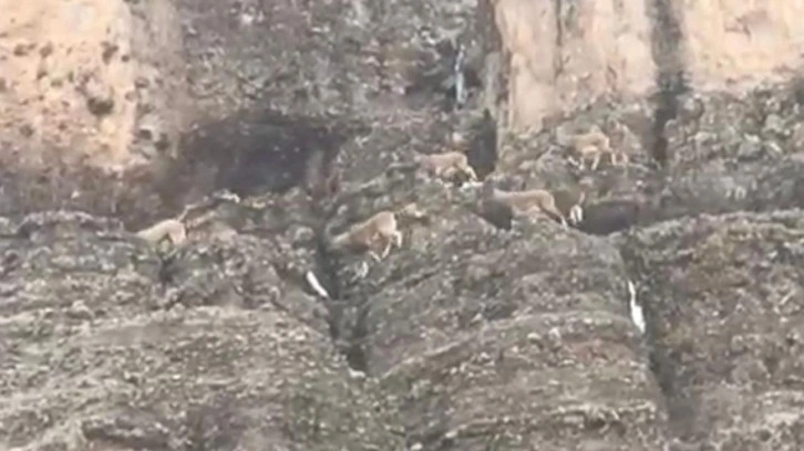 Türkiye'de nesli tükenme tehlikesi altında olduğu için koruma altında olan yaban keçileri, Malatya'nın Arapgir ilçesindeki dağlık alanda sürü halinde görüntülendi.