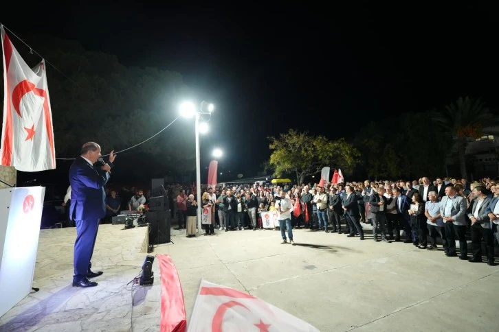Tatar ayrıca, “Karşı taraftakilerin meydanlarında ne Türkiye Cumhuriyeti bayrağı var, ne Kuzey Kıbrıs Türk Cumhuriyeti bayrağı var. Çünkü akılları karışık... Kime hizmet ettiklerini bilmeden siyaset yapanlar bu ülkede yok olmaya mahkûmdurlar. İnşallah bunları federasyon gibi 19 Ekim günü sandığa gömeceğiz." ifadelerini kullandı.
