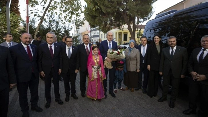 Kurtulmuş'u, Vali Yakup Canbolat ile yöresel kıyafet giyen minik öğrenciler karşıladı.
