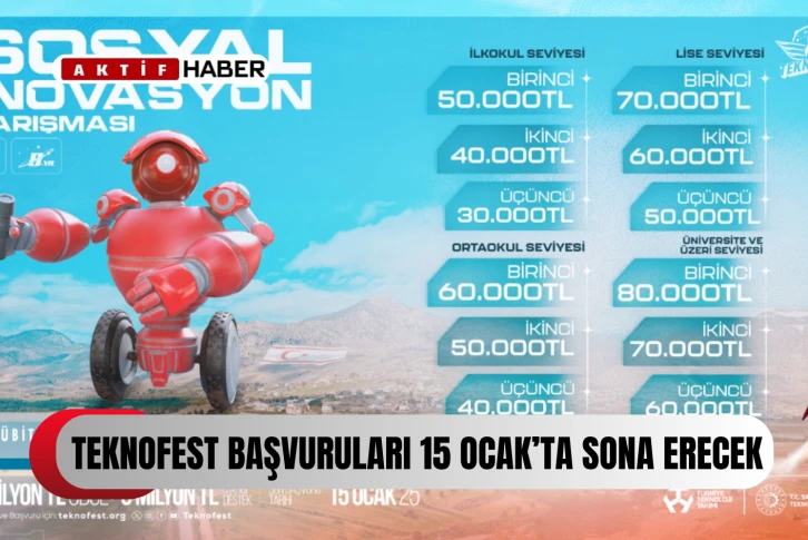 Dünyanın dört bir yanından katılımcıları ağırlayacak TEKNOFEST KKTC Teknoloji Yarışmaları için başvuru süresi 15 Ocak tarihinde sona erecek. Katılımın ücretsiz olduğu etkinliğe dair detaylı bilgi ve başvuru için www.teknofest.org adresini ziyaret edilebilecek.
