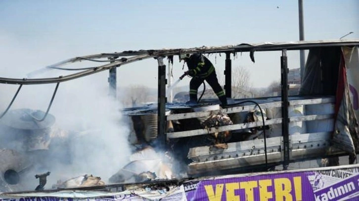 Olay, TEM Otoyolu'nun Ankara istikameti Yenişehir Mahallesi mevkisinde meydana geldi. Edinilen bilgiye göre, Gebze'den yüklediği kağıt ruloları Konya'ya götüren M.Ç. idaresindeki 42 EMC 92 Mercedes marka tırın lastiği patladı. Tırı sağa çeken sürücü, araçtan indiği esnada lastikte yanma meydana geldi. Sürücü yangın tüpüyle alevlere müdahale etmeye çalışsa da başarılı olamadı. Yangının dorseye sıçramasıyla sürücü M.Ç., çekiciyi dorseden ayırarak 112 Acil Çağrı Merkezi'ne ihbarda bulundu. İhbar üzerine olay yerine itfaiye, polis ve jandarma ekipleri sevk edildi. Kısa sürede olay yerine gelen itfaiye ekipleri, yangını söndürmek için çalışma başlattı. Ekiplerin uzun uğraşları neticesinde yangın söndürülürken, dorse kısmı tamamen yanarak geriye demir yığını kaldı.