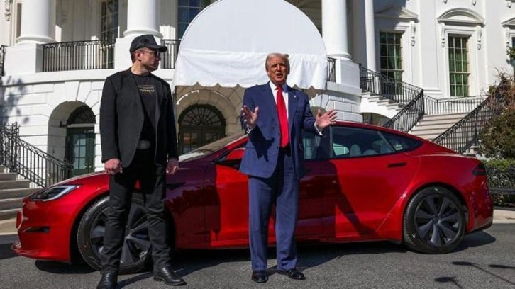 ABD Başkanı Trump, Musk ile beraber kameralar karşısına geçerek, Beyaz Saray'ın bahçesine getirilen Tesla araçlarla poz verdi.