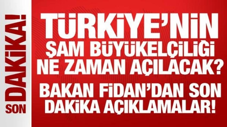 SON DAKİKA HABERİ: Dışişleri Bakanı Hakan Fidan, " Şam Büyükelçiliği'ni açmak için şartların oluşmasına bakacağız." dedi.