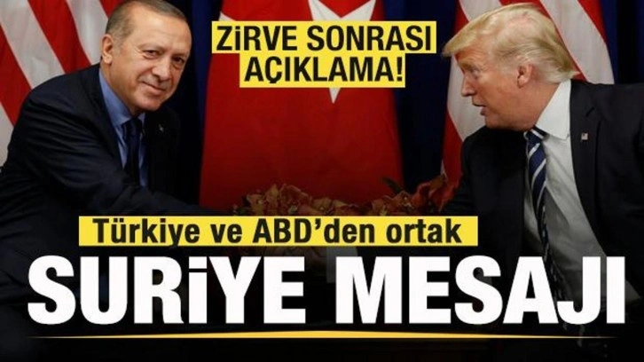 Açıklamada, Türkiye ve ABD, Suriye'de istikrar ve güvenlik konusunda işbirliğinin ve koordinasyonun Cumhurbaşkanı Recep Tayyip Erdoğan ve ABD Başkanı Donald Trump'ın ortaya koydukları çerçevede arttırmaya kararlı olduğu belirtildi.