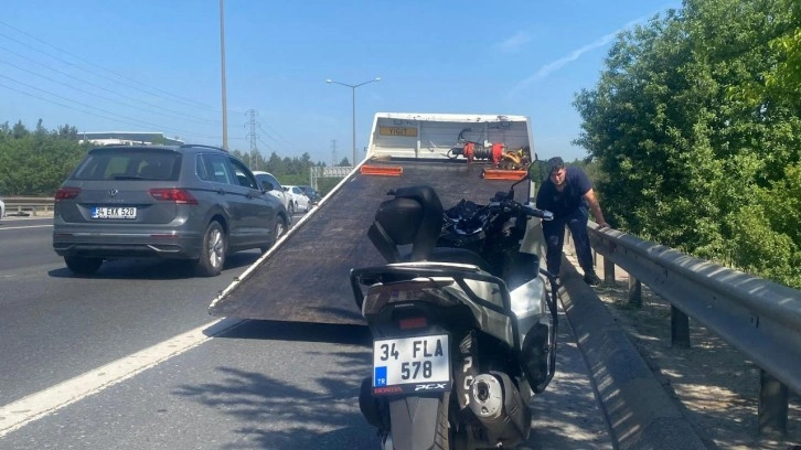 Motosiklet kaza yerinden çekici yardımıyla kaldırılırken, kazaya ilişkin inceleme başlatıldı.