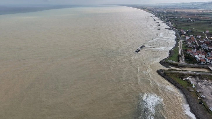 Dronla kaydedilen görüntülerde, denizde mavi ile kahverengi arasındaki renk ayrımı net şekilde görüldü.