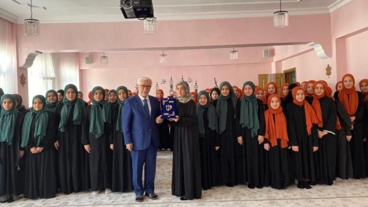 Törende Elif Kırmızızambak’a hediye takdim eden İl Müftüsü Şakir Pinal, öğrenciyi tebrik ederek, “Azim ve gayretle her şeyin başarılabileceğini unutmamak gerekir. Böyle örnek öğrencilerimizin diğerlerine de ilham vereceğine inanıyorum. Onları yetiştiren hocalara teşekkür ederim” diye konuştu.